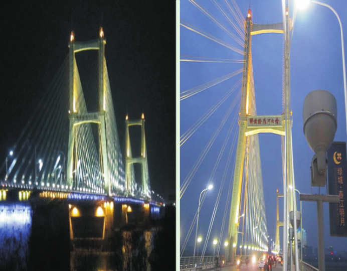 項目工程內(nèi)容:主橋兩側(cè)LED投光燈,引橋兩側(cè)LED洗墻燈,主橋拉鎖聚光燈、欄桿外側(cè)LED小投光燈、引橋橋墩投光燈、聚光燈等夜景照明工程
