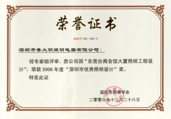 獲獎信息:深圳市優(yōu)秀照明設計獎
